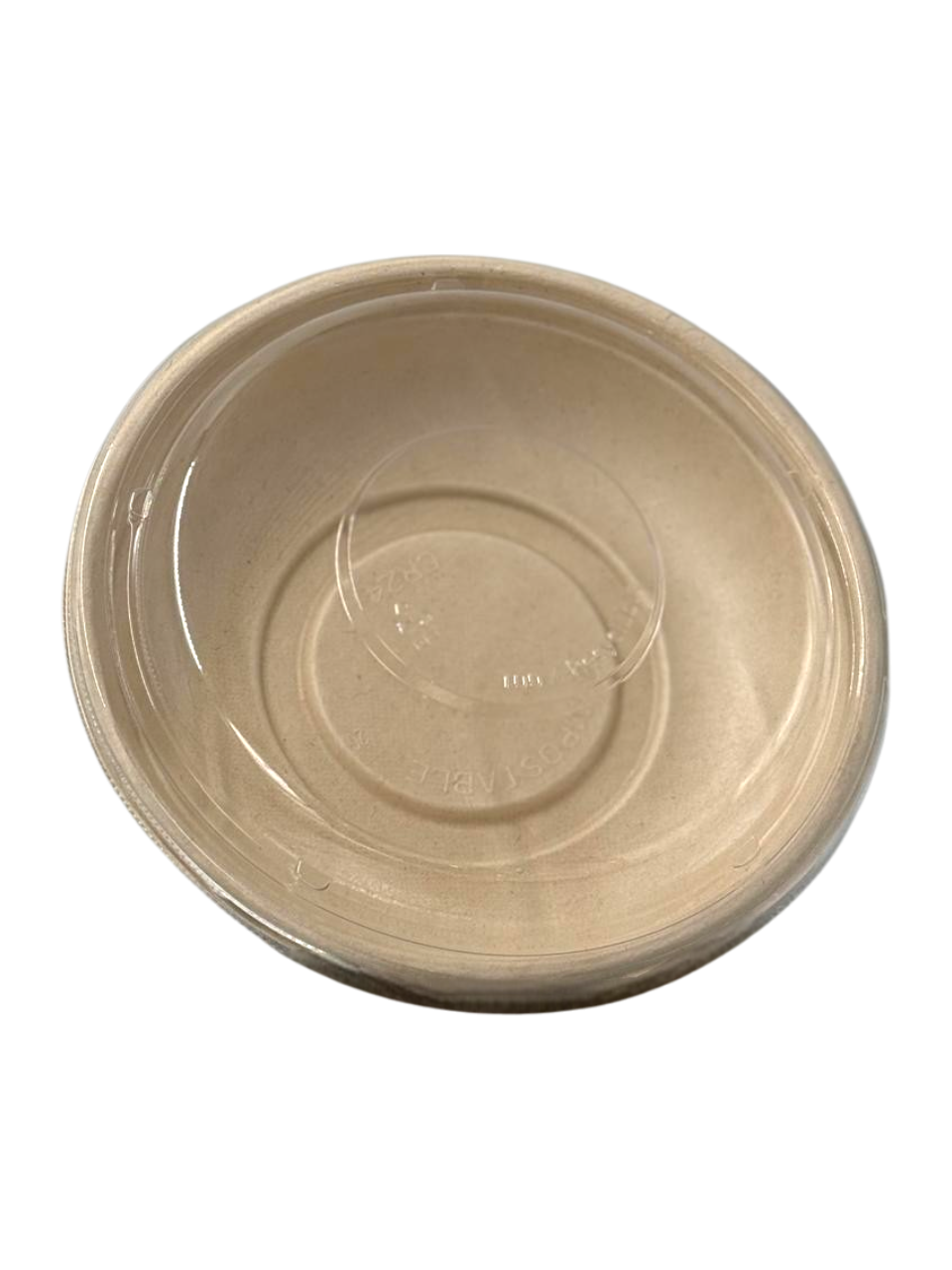 This 24-ounce, deep, round sugarcane bowl with lid is an eco-friendly food container made from sugarcane waste. These disposable bowls are a sustainable alternative to traditional plastic or Styrofoam, offering durability and versatility for a wide variety of hot and cold foods.