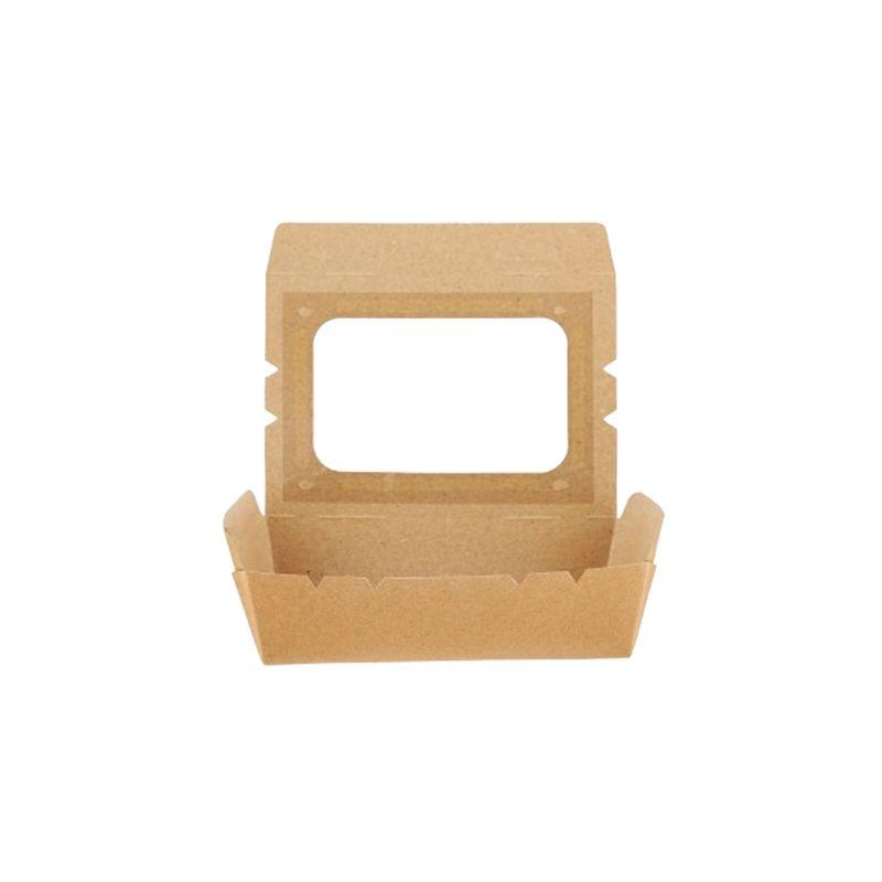 Kraft window containers are food-safe, typically rectangular containers made from sturdy brown kraft paper with a clear plastic window (often PET) for displaying contents, and are designed for food service and retail packaging